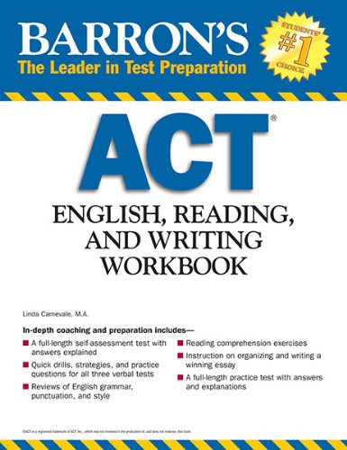 Students can use this workbook to review English grammar, punctuation, and style, as well as to sharpen their reading comprehension with practice passages in the Humanities, Natural Science, Prose Fiction, and Social Science. They can also hone their essay-writing skills, guided by the author's instruction in organizing ideas, writing a well-developed draft, and editing the finished essay.Read more Barron's ACT English, Reading and Writing Workbook, 2nd Edition